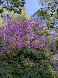 蹴上から大文字山山頂への登山道にも、ミツバツツジがたくさん咲くことは一昨年登って初めて知った。ミツバツツジは、ピンク色の柔らかい花が咲き、花が咲いた後に芽吹く葉は3枚ある。