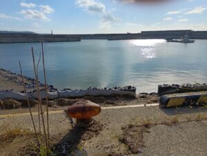 名舟(なふね)漁港です。海底が隆起したため、岸壁に船が接岸できなくなったり、港に船が出入りできず、放置されたままになっています。
