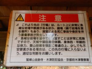 以前、知人から「鷲峰山に登ったが、『行者めぐり』がとてもスリルがあって恐かった」と聞き、京都にもそんな険しい山があるのかと思い、1度その『行者めぐり』を歩いてみたかった。
